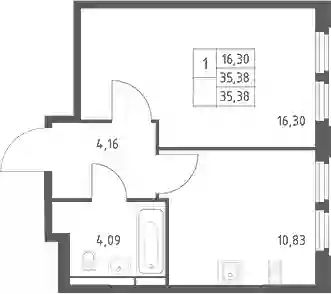 1-к.квартира, 35.38 м², 4 эт. в ЖК Космический Квартал Корпус 1