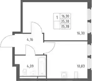 1-к.квартира, 35.38 м², 6 эт. в ЖК Космический Квартал Корпус 1