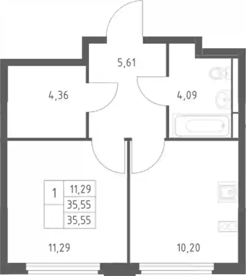 1-к.квартира, 35.55 м², 12 эт. в ЖК Космический Квартал Корпус 1