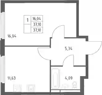 1-к.квартира, 37.1 м², 16 эт. в ЖК Космический Квартал Корпус 1