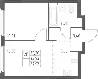8 595 343 ₽2-к.квартира, 32.93 м², 17 эт.