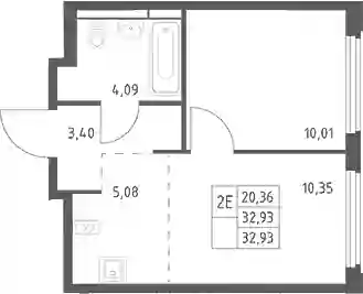 2-к.квартира, 32.93 м², 15 эт. в ЖК Космический Квартал Корпус 1