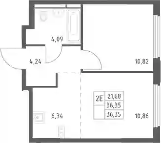 2-к.квартира, 36.35 м², 14 эт. в ЖК Космический Квартал Корпус 1