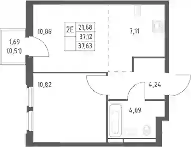 9 217 410 ₽2-к.квартира, 37.12 м², 15 эт.