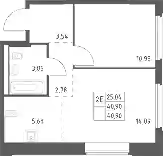 9 735 566 ₽2-к.квартира, 40.9 м², 12 эт.