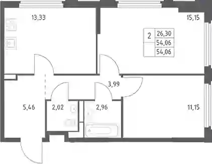 10 116 000 ₽2-к.квартира, 54.2 м², 3 эт.