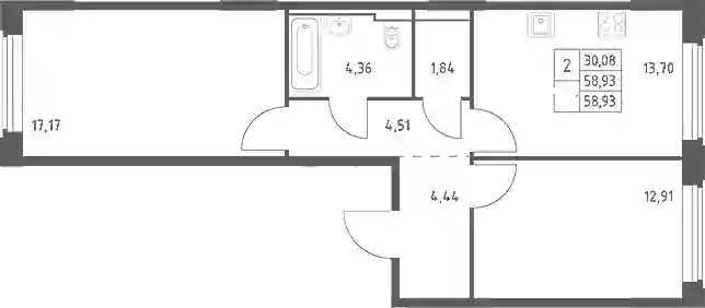 2-к.квартира, 58.93 м², 2 эт. в ЖК Космический Квартал Корпус 1
