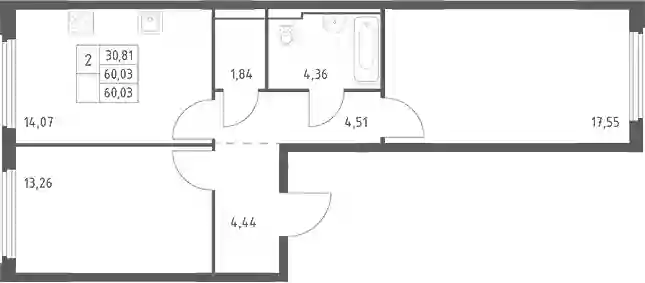 14 287 196 ₽2-к.квартира, 60.03 м², 16 эт.