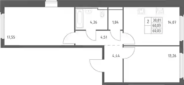 15 113 265 ₽2-к.квартира, 60.03 м², 14 эт.