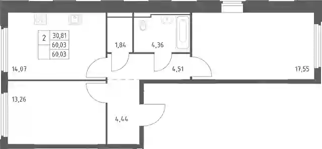 2-к.квартира, 60.03 м², 16 эт. в ЖК Космический Квартал Корпус 1