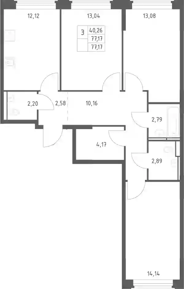12 417 900 ₽3-к.квартира, 77.8 м², 3 эт.