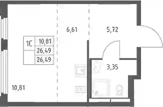 Студия, 26.49 м², 12 эт. в ЖК Космический Квартал Корпус 1
