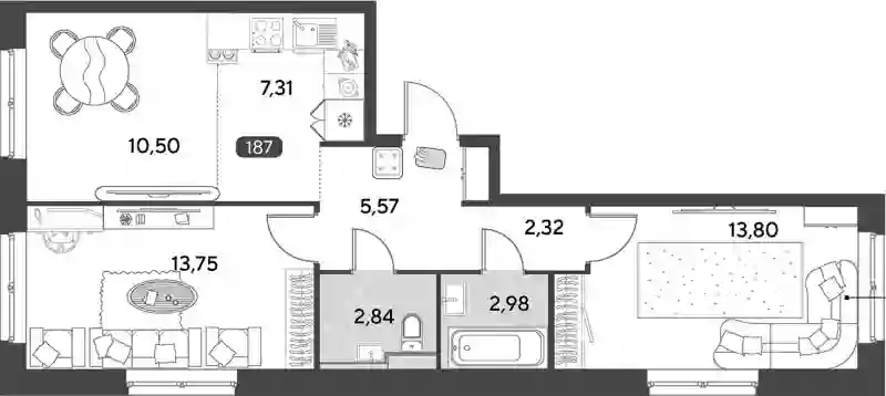 8 758 540 ₽2-к.квартира, 51.1 м², 13 эт.