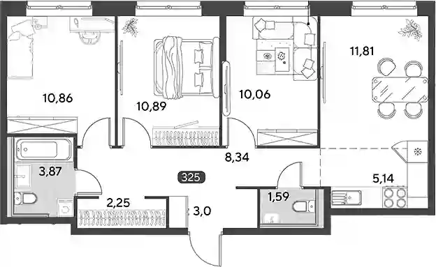 7 759 296 ₽3-к.квартира, 55.95 м², 11 эт.