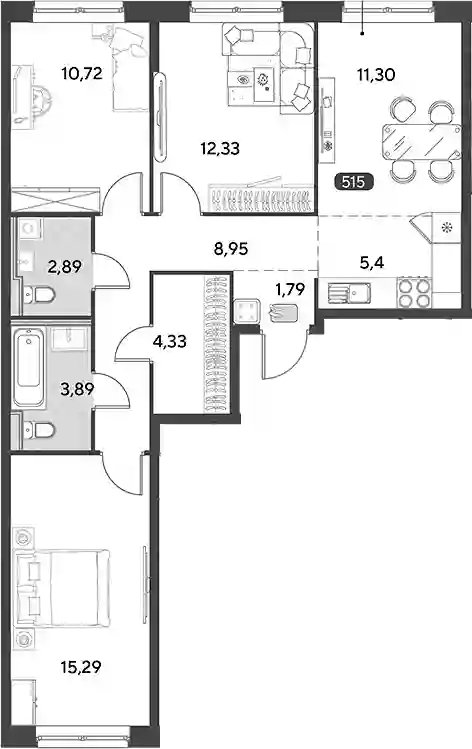 4-к.квартира, 76.89 м², 18 эт. в ЖК Космопарк Корпус 3.2