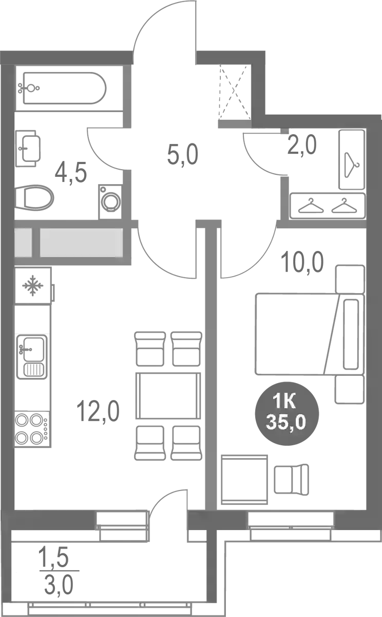 6 987 290 ₽1-к.квартира, 35.5 м², 3 эт.
