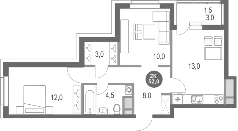 9 205 080 ₽2-к.квартира, 50.5 м², 13 эт.