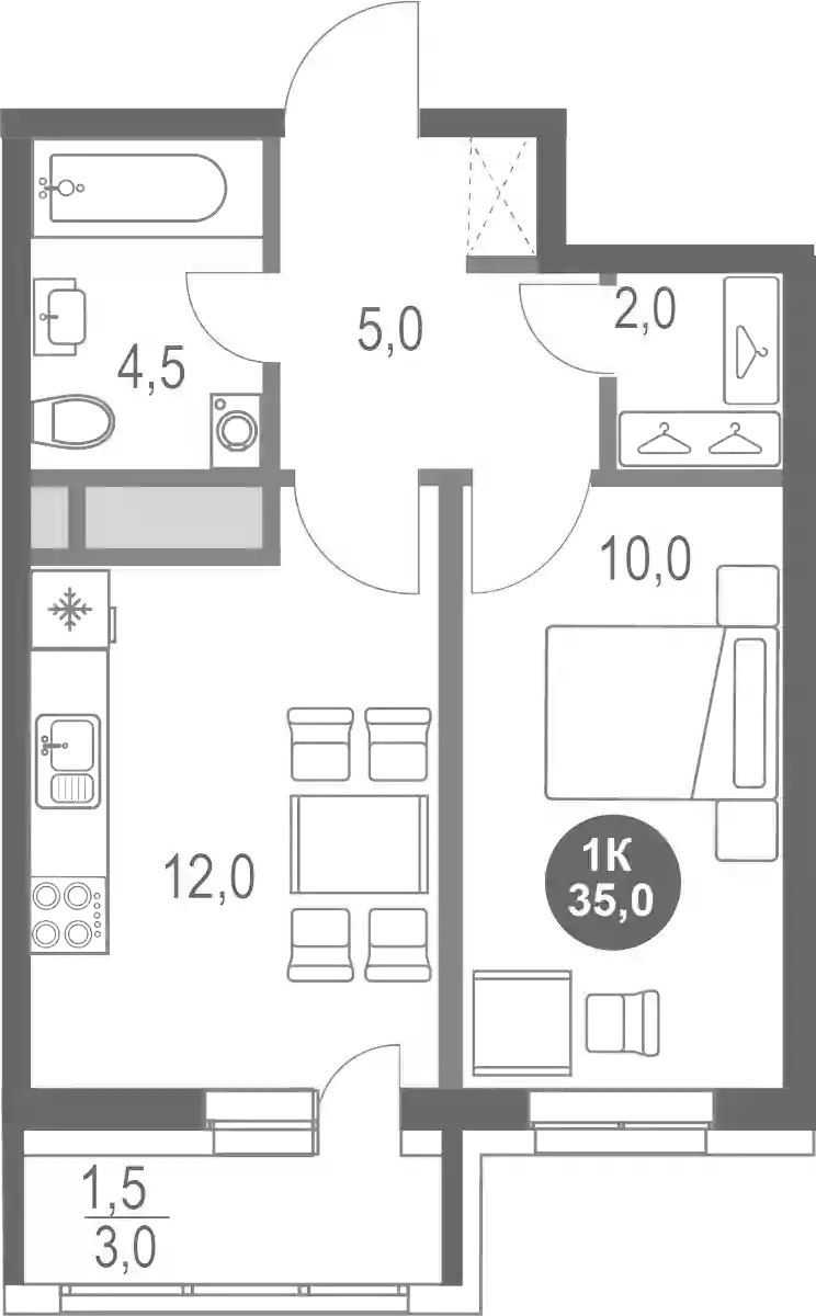 7 100 520 ₽1-к.квартира, 35.5 м², 12 эт.