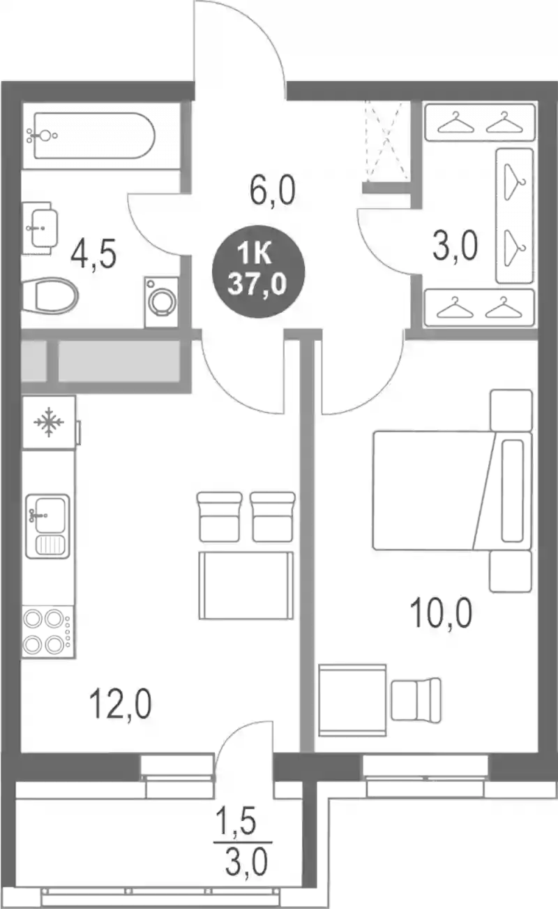 6 905 160 ₽1-к.квартира, 35.5 м², 15 эт.
