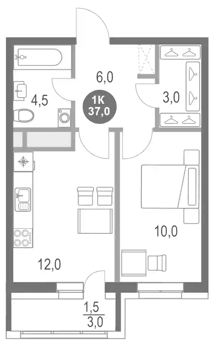 6 905 160 ₽1-к.квартира, 35.5 м², 15 эт.