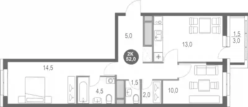 10 353 880 ₽2-к.квартира, 50.5 м², 10 эт.