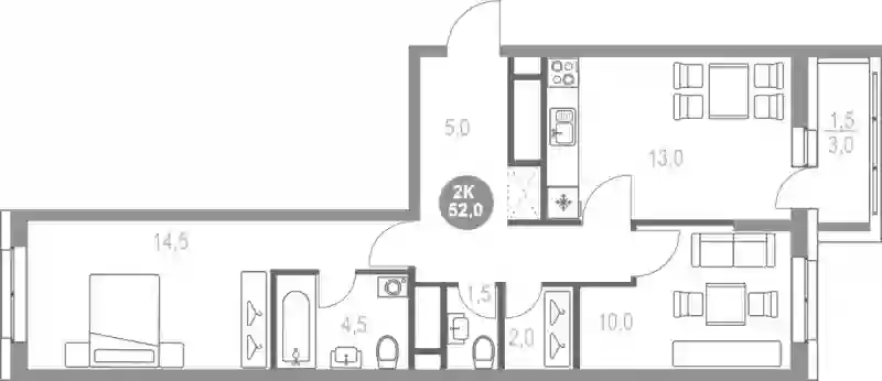 9 786 040 ₽2-к.квартира, 50.5 м², 14 эт.