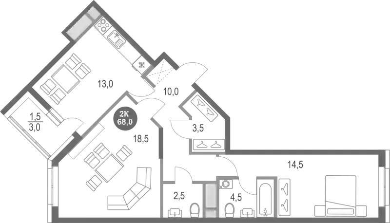 66.5 м2