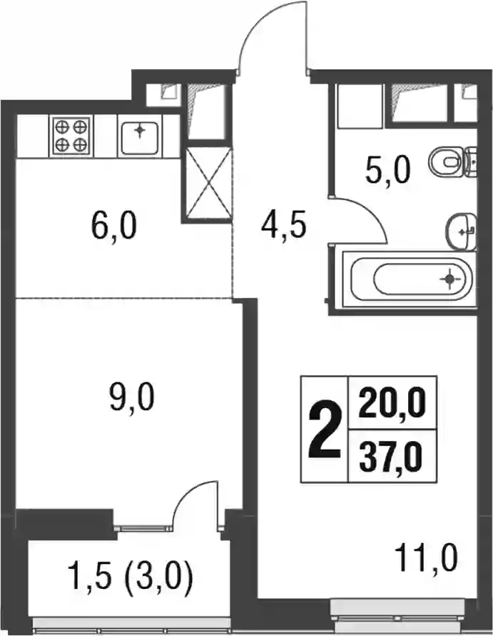 9 016 000 ₽1-к.квартира, 35.5 м², 14 эт.