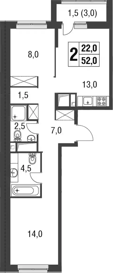 9 783 840 ₽2-к.квартира, 50.5 м², 14 эт.