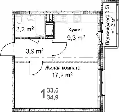 1-к.квартира, 33.6 м², 3 эт. в ЖК Красная Горка Корпус 1