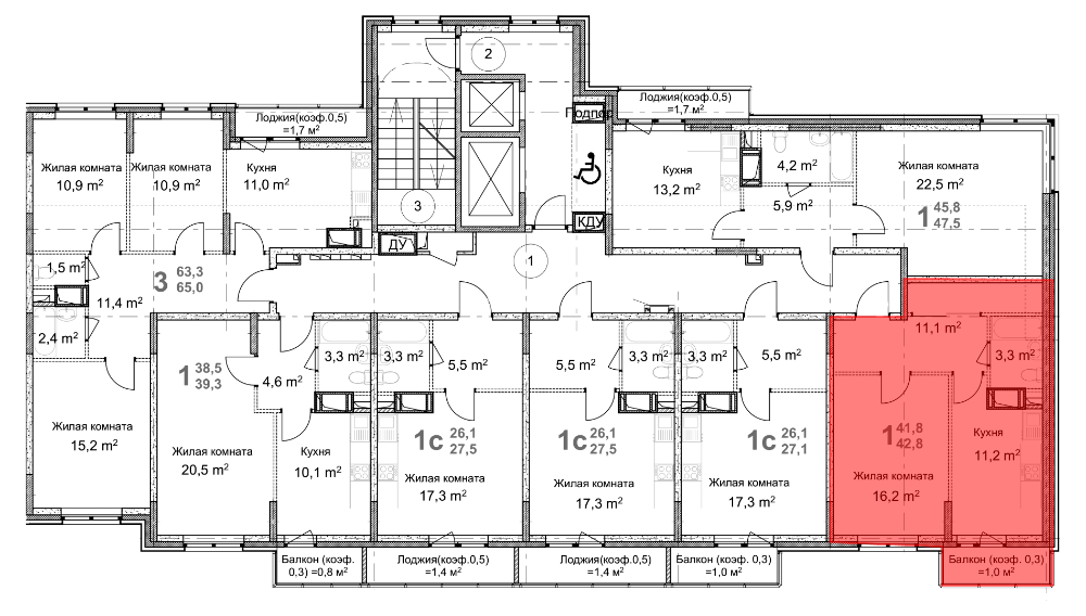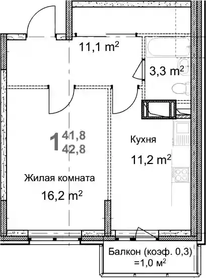 1-к.квартира, 41.8 м², 6 эт. в ЖК Красная Горка Корпус 1