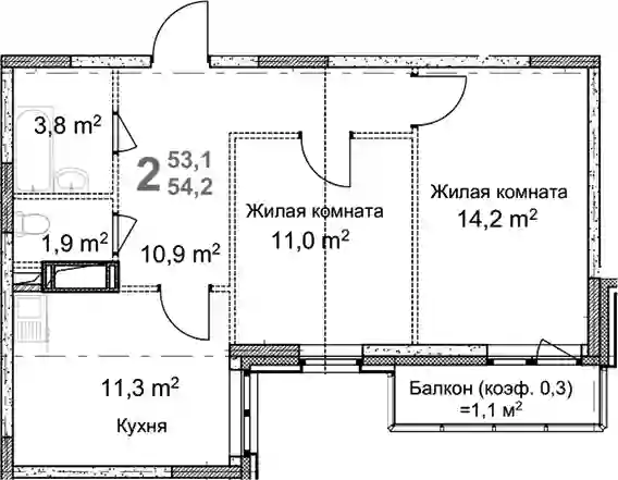 2-к.квартира, 53.1 м², 7 эт. в ЖК Красная Горка Корпус 1