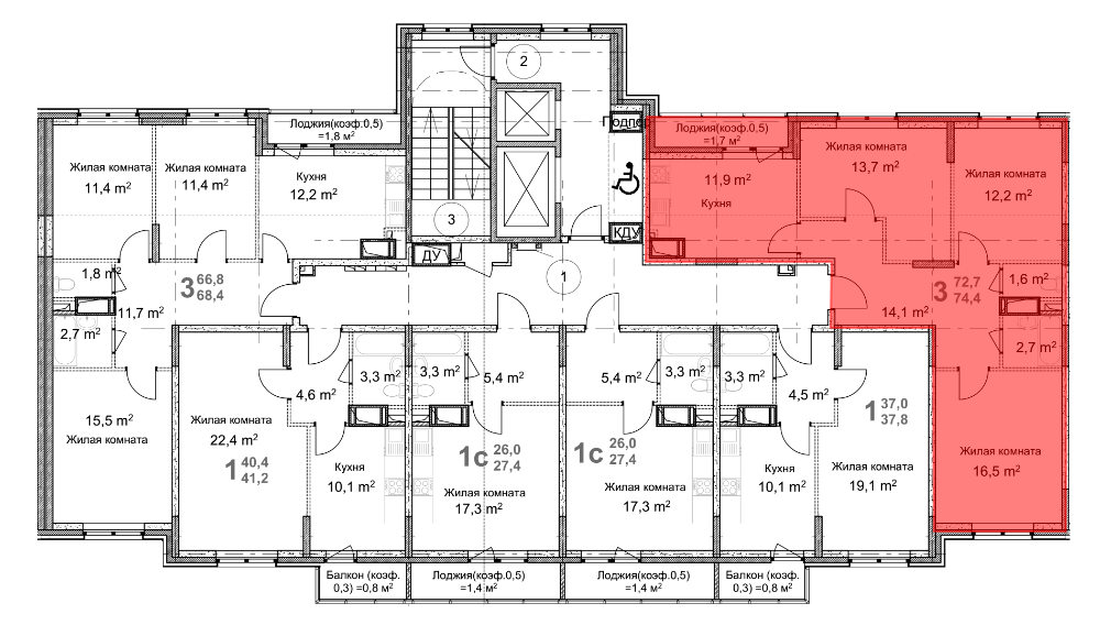3-к.квартира, 72.7 м², 7 эт. в ЖК Красная Горка Корпус 1