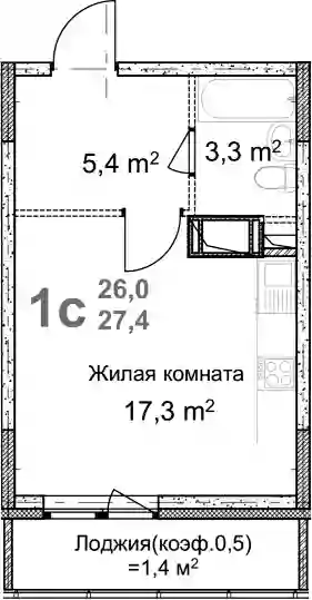 Студия, 26 м², 16 эт. в ЖК Красная Горка Корпус 1