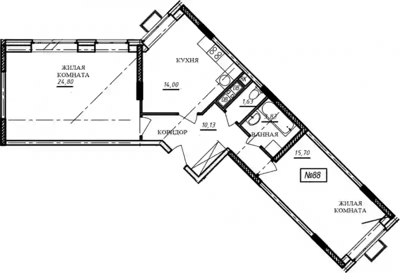Планировочные решения включают квартиры с 1–3 комнатами. Все помещения передаются без отделки. В квартирах выполнена разводка инженерных коммуникаций, установлены входные двери, окна.