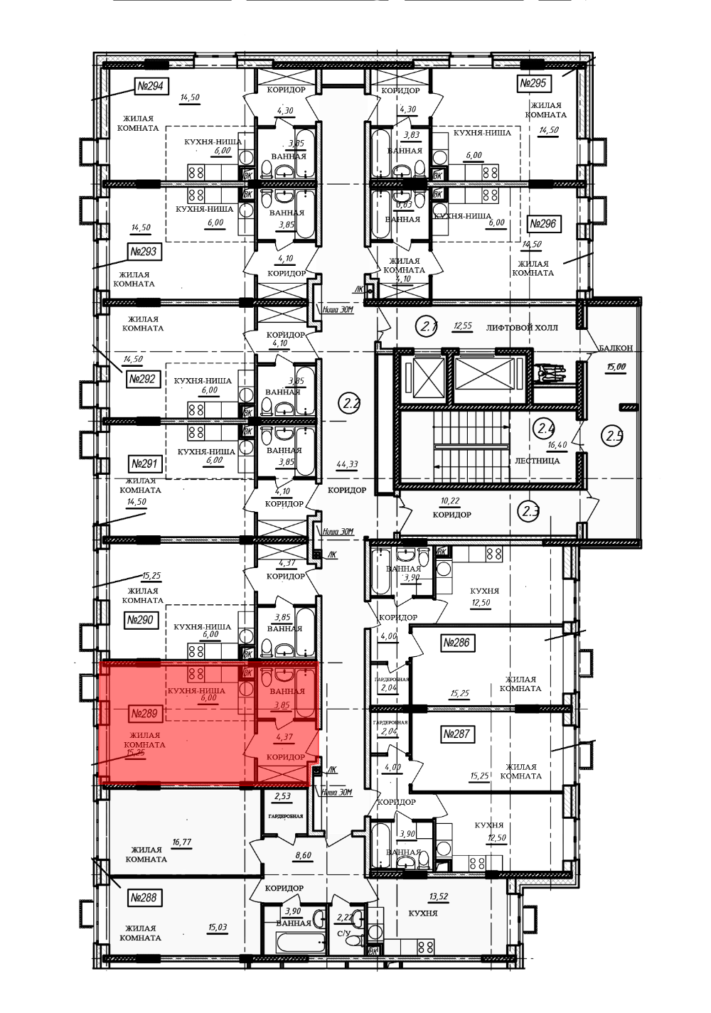 Со второго по шестнадцатый этажи размещены квартиры, включая студии, 1-, 2- и 3-комнатные варианты. Квартиры передаются без отделки и с подчистовой отделкой, включающей штукатурку стен и цементную стяжку пола. Все квартиры оснащены пластиковыми окнами с двухкамерными стеклопакетами и металлическими входными дверями.