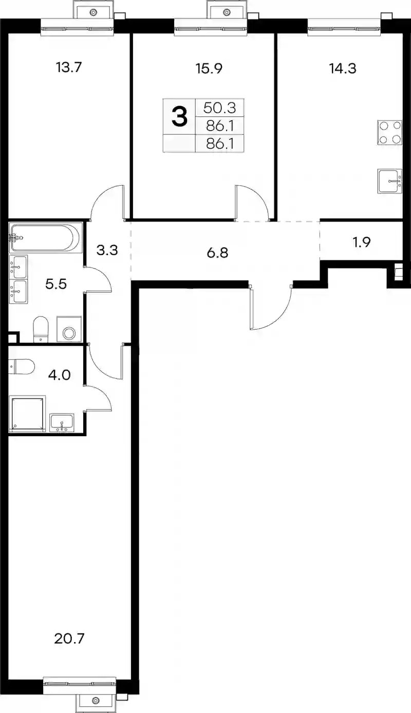 29 713 110 ₽3-к.квартира, 86.1 м², 18 эт.