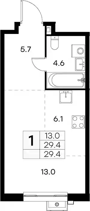 9 755 469 ₽1-к.квартира, 30.1 м², 13 эт.