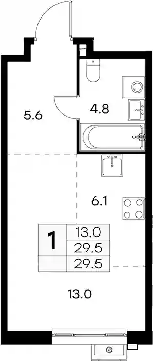9 755 469 ₽1-к.квартира, 30.1 м², 13 эт.