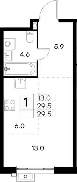 11 614 443 ₽Студия, 28.5 м², 13 эт.