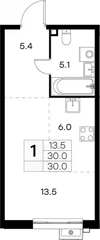 Студия, 30 м², 15 эт. в ЖК Куркино 15 Корпус 1