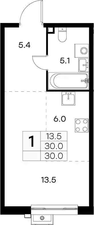 10 180 113 ₽1-к.квартира, 30.1 м², 19 эт.