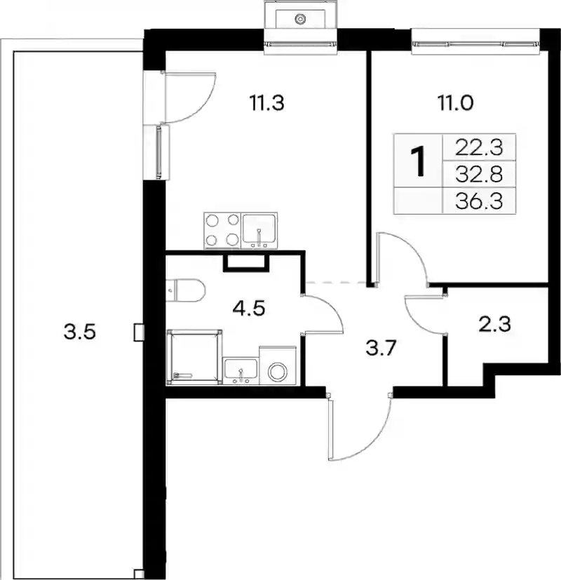 1-к.квартира, 32.8 м², 22 эт. в ЖК Куркино 15 Корпус 2