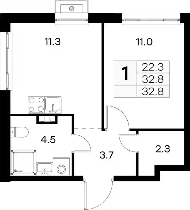 1-к.квартира, 32.8 м², 23 эт. в ЖК Куркино 15 Корпус 2
