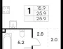 9 931 194 ₽Студия, 25.9 м², 15 эт.