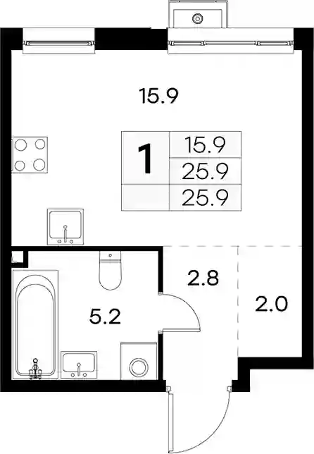 9 931 194 ₽Студия, 25.9 м², 15 эт.