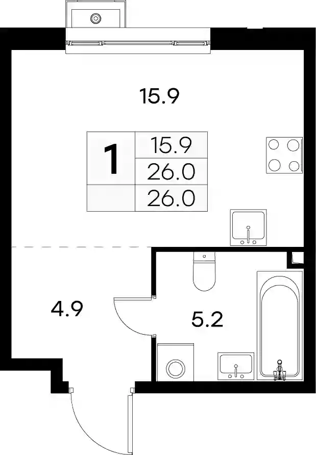 13 058 484 ₽Студия, 26.1 м², 20 эт.