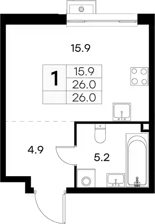 9 931 194 ₽Студия, 25.9 м², 15 эт.