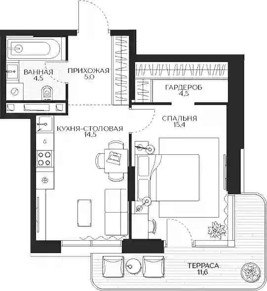 25 454 411 ₽2-к.квартира, 45.35 м², 1 эт.