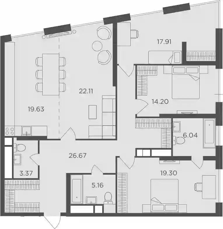 Проектом запланированы квартиры различных площадей и планировок от небольших студий до просторных двухуровневых квартир. Кроме того, будут представлены квартиры с каминами, террасами и окнами в ванных комнатах. Лоджии с панорамным остеклением обеспечат повышенную освещенность. Квартиры передаются дольщикам с чистовой отделкой и без отделки.